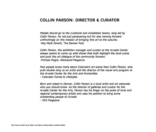 Collin Parson, Director of Galleries and Curator, Arvada Center for the Arts and Humanities